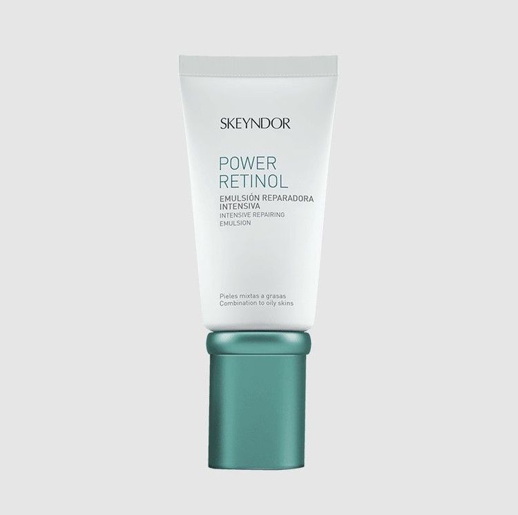 Skeyndor Power Retinol – Intensive Repair Emulsion е иновативна емулсия с високоактивна ретинолова формула, специално разработена за интензивна борба с признаците на остаряване и възстановяване на младежкия облик на кожата. Този лечебен продукт съчета стабилизиран ретинол с мощни антиоксиданти и хидратиращи комплекси, които стимулират естествения синтез на колаген, намаляват дълбочината на бръчките и подобряват еластичността на кожата. Формулата е създадена да работи в дълбочина, като едновременно с това поддържа оптималната хидратация и защита на кожната бариера.